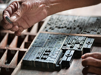Het principe bestond uit het bij elkaar zetten van loden letters in combinatie met tekeningen die ook uit hout of metaal